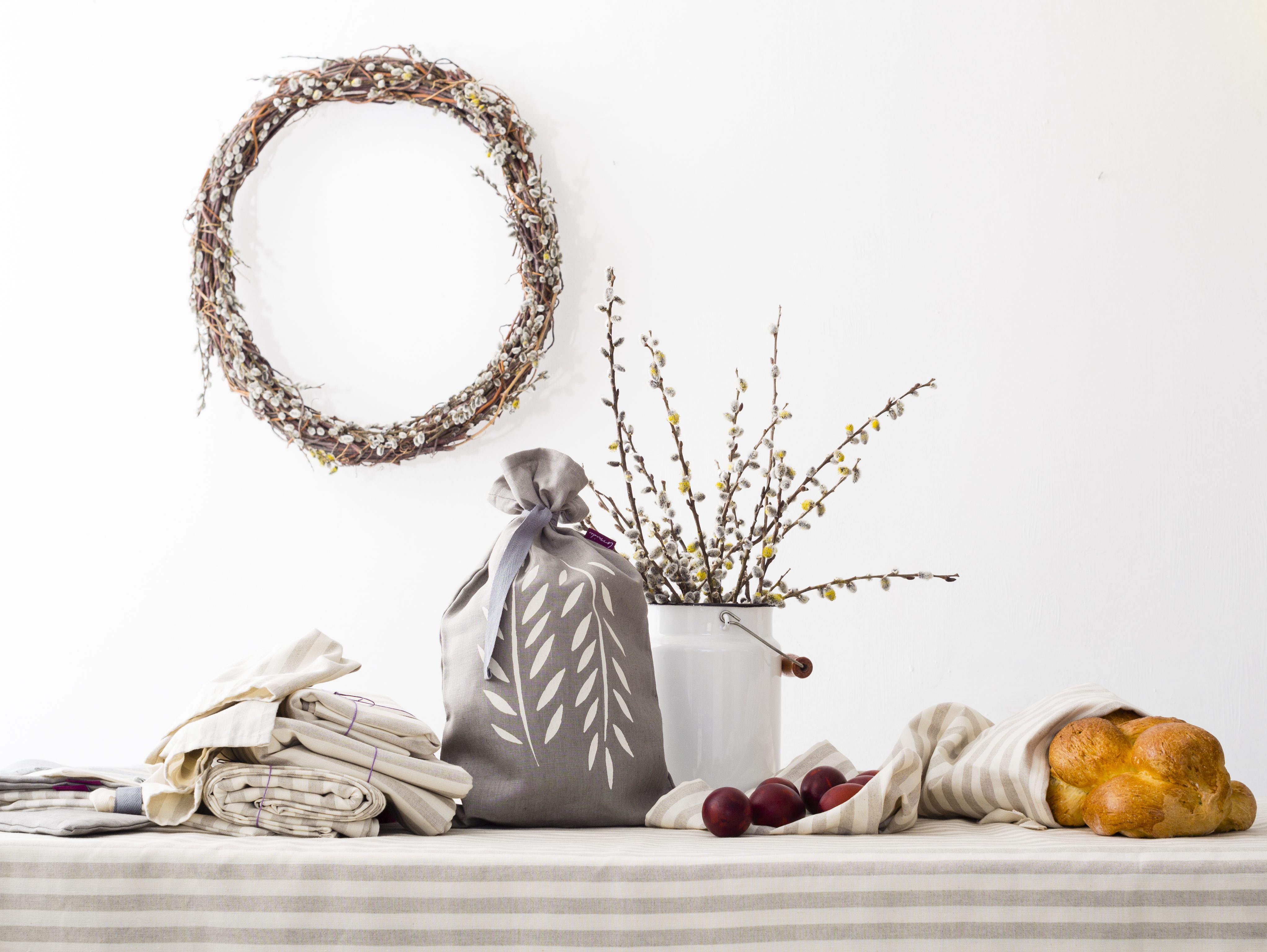 A tavaszi kollekcióban, húsvét előtt jelent meg a csíkos lenvászon termékekkel együtt. Ez lett a karantén kollekciónk. Bezárt az iskola és az óvoda, így esélyünk sem volt nyomtatni három kisgyerek mellett, ezért feldolgoztuk a csíkos lenvásznat, amit ugyanabból a bezárt gyárból vettünk, és bár nem tudtuk korábban, mit lesz belőle, a karantén megadta a választ. Nem kellett megnyomtatnunk, hisz szövött mintás, csíkos volt, ráadásul tudtunk belőle mást is csinálni.